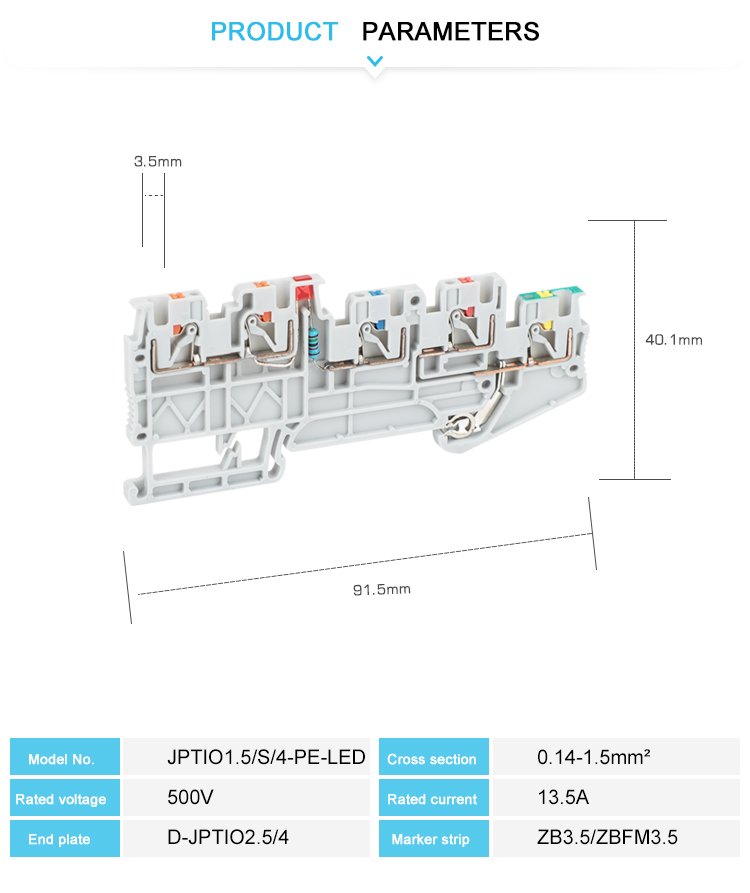 Realizzato in nylon tecnico ignifugo PA66 con vite in ottone.Realizzato in nylon tecnico ignifugo PA66 con vite in ottone.I morsetti di collegamento Push-in sono caratterizzati da un cablaggio semplice e senza attrezzi di conduttori con puntalini o conduttori rigidi.Il design compatto e la connessione frontale consentono il cablaggio in uno spazio ristretto.Oltre alla possibilità di prova nell'albero a doppia funzione, tutti i morsetti forniscono un collegamento di prova aggiuntivo.Con piedino universale che può essere installato su guida Din NS 35.È possibile collegare due conduttori con facilità, anche le sezioni trasversali dei conduttori di grandi dimensioni non sono un problema. La distribuzione del potenziale elettrico può utilizzare ponti fissi al centro del terminale. Tutti i tipi di accessori: copertura terminale, tappo terminale, piastra divisoria, sgancio marcatore, ponte fisso, ponte di inserimento, ecc.