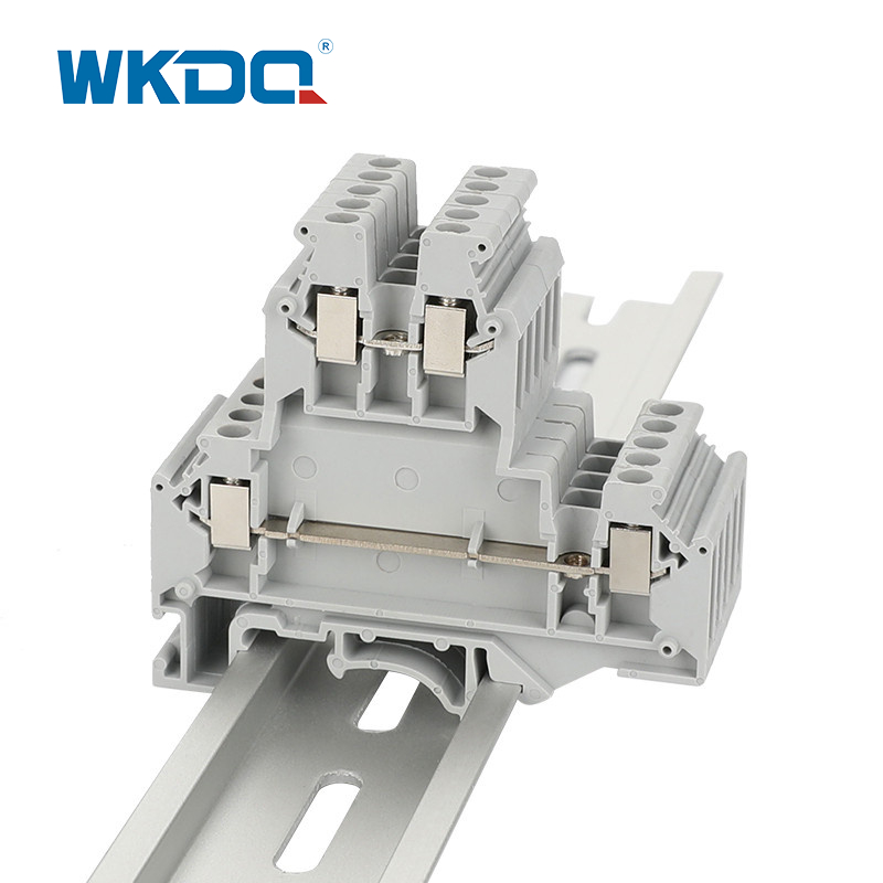 Design a doppio livello: le morsettiere a doppio livello forniscono il doppio della densità dei blocchi passanti. Ciò è particolarmente vantaggioso quando lo spazio è limitato, consentendo un'efficiente distribuzione dei potenziali. Il design multilivello semplifica il cablaggio e contribuisce a un'installazione più organizzata e compatta.