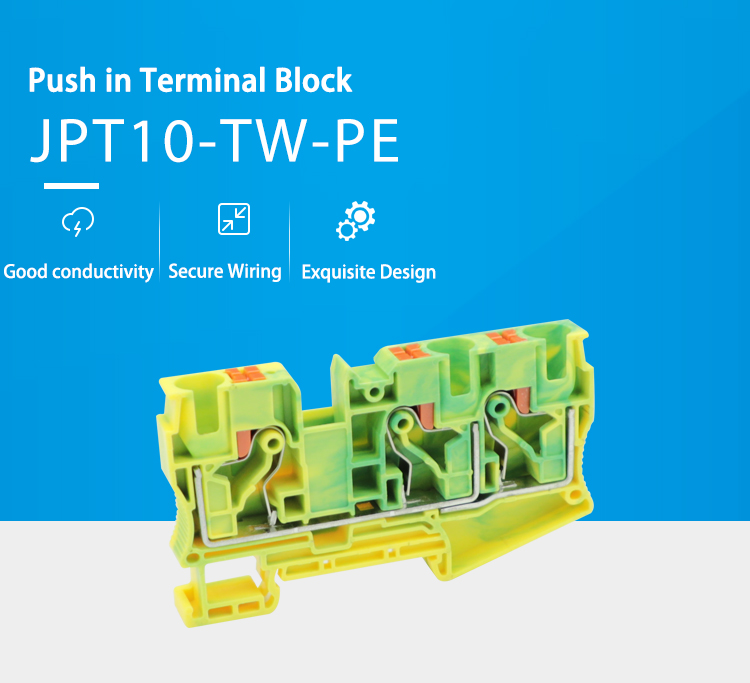 Il terminale di messa a terra multi-conduttore push-in push-in PT10-TW-PE rivoluziona le soluzioni di messa a terra: il design senza viti che blocca in push-in completa connessioni altamente affidabili in pochi secondi, eliminando il rischio di allentamento e supportare la connessione simultanea di più conduttori per soddisfare i requisiti complessi dei moderni sistemi elettrici. I materiali di alta qualità sono altamente conduttivi, resistenti alle vibrazioni, ad alta temperatura e stress meccanico. Il design compatto è adatto per scenari limitati dallo spazio. Viene applicato in modo efficiente in settori come attrezzature industriali, data center e automazione dell'edificio, fornendo agli ingegneri un'opzione di messa a terra conveniente e ad alte prestazioni.