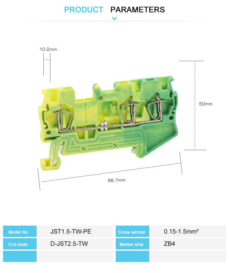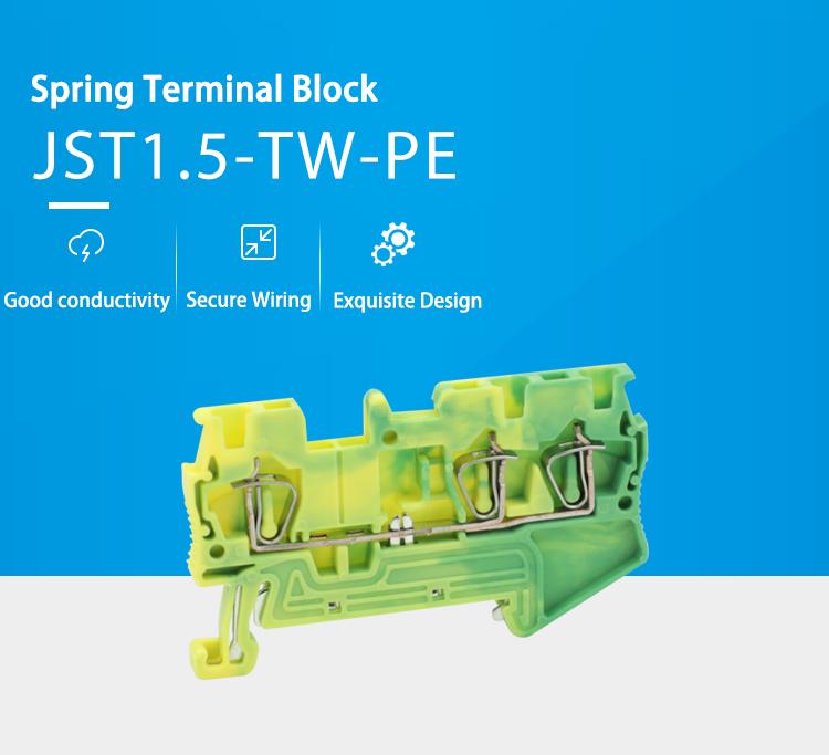 Il morsettiere ST1.5-TW-PE a vite a vite senza vite adotta un innovativo design di clip a molla, supportando l'installazione rapida senza strumenti di cavi da 1,5 mm ² e fornendo una connessione di messa a terra sismica stabile. La struttura circolare compatta migliora la stabilità meccanica ed è adatta alla messa a terra protettiva di attrezzature industriali, edifici e sistemi di energia residenziale. Rispetto ai tradizionali terminali a vite, riduce significativamente i tempi di installazione ed è facile da mantenere, garantendo la sicurezza elettrica con prestazioni affidabili e soddisfacendo le moderne esigenze di messa a terra di diversi scenari